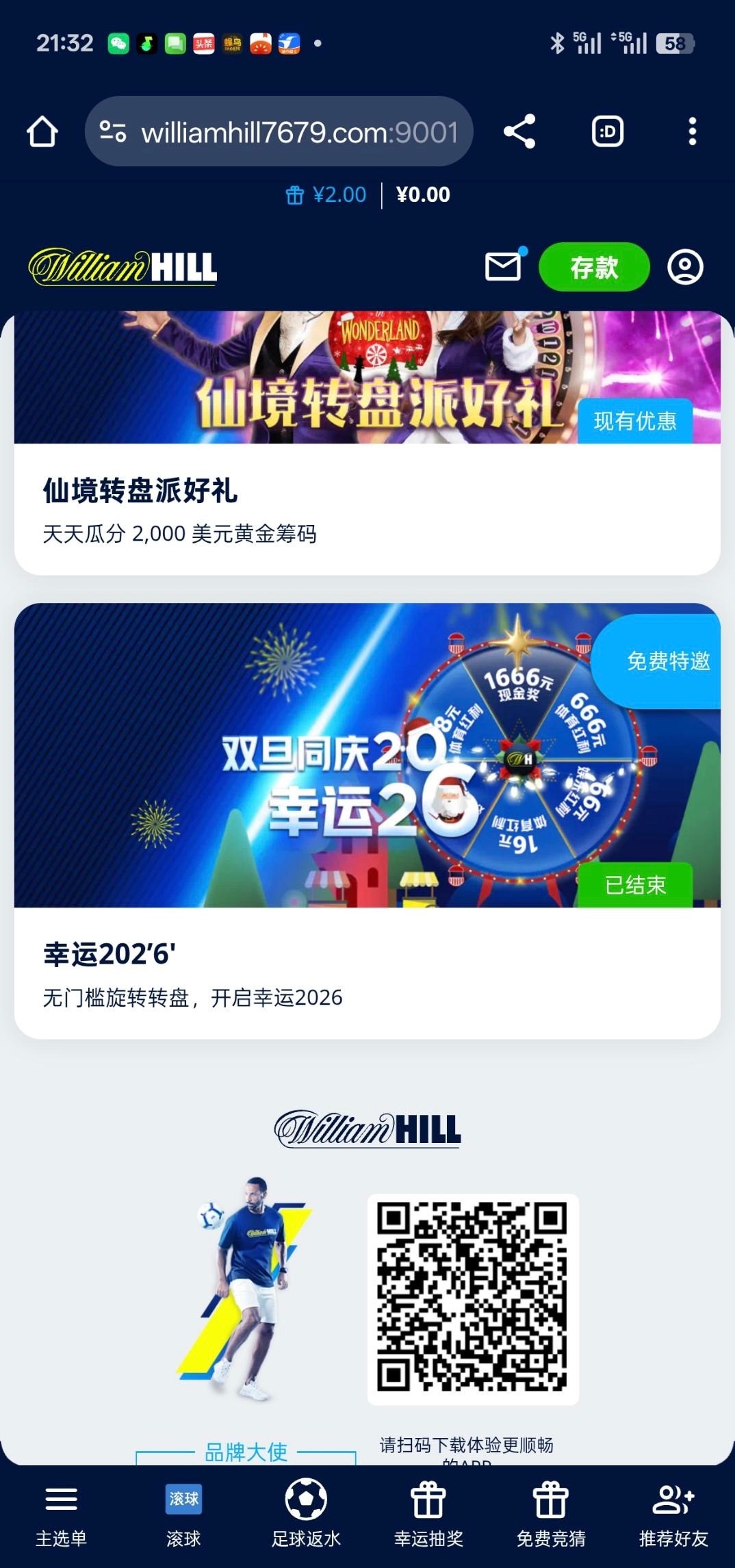 我是收到邮箱的,上线里面有个幸运2026活动点进去旋转就能抽奖,我抽到了66有号的可以去看看https://www.williamhill7679.com:9001/zh-cn/login