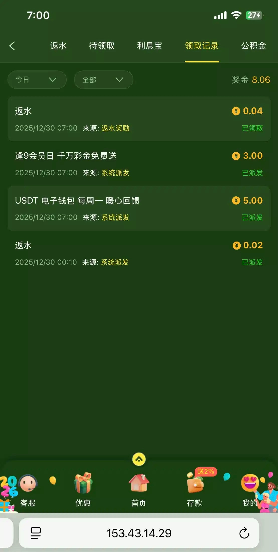 领了8块打不出, 充过30,不知道黑不黑,有就有没有就算了官方链接3615.com