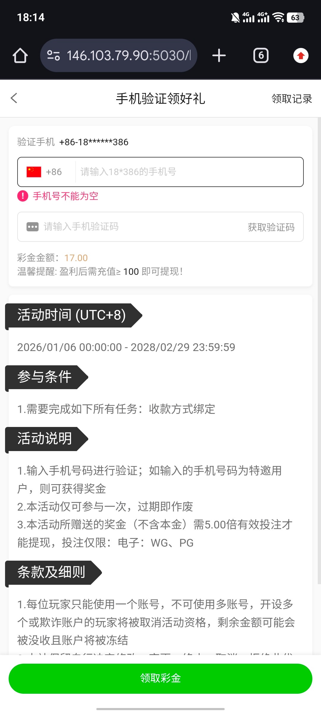 注册账号 自助用特邀手机号码碰瓷 领17需要5倍流水 提现要求充值100自测 半黑