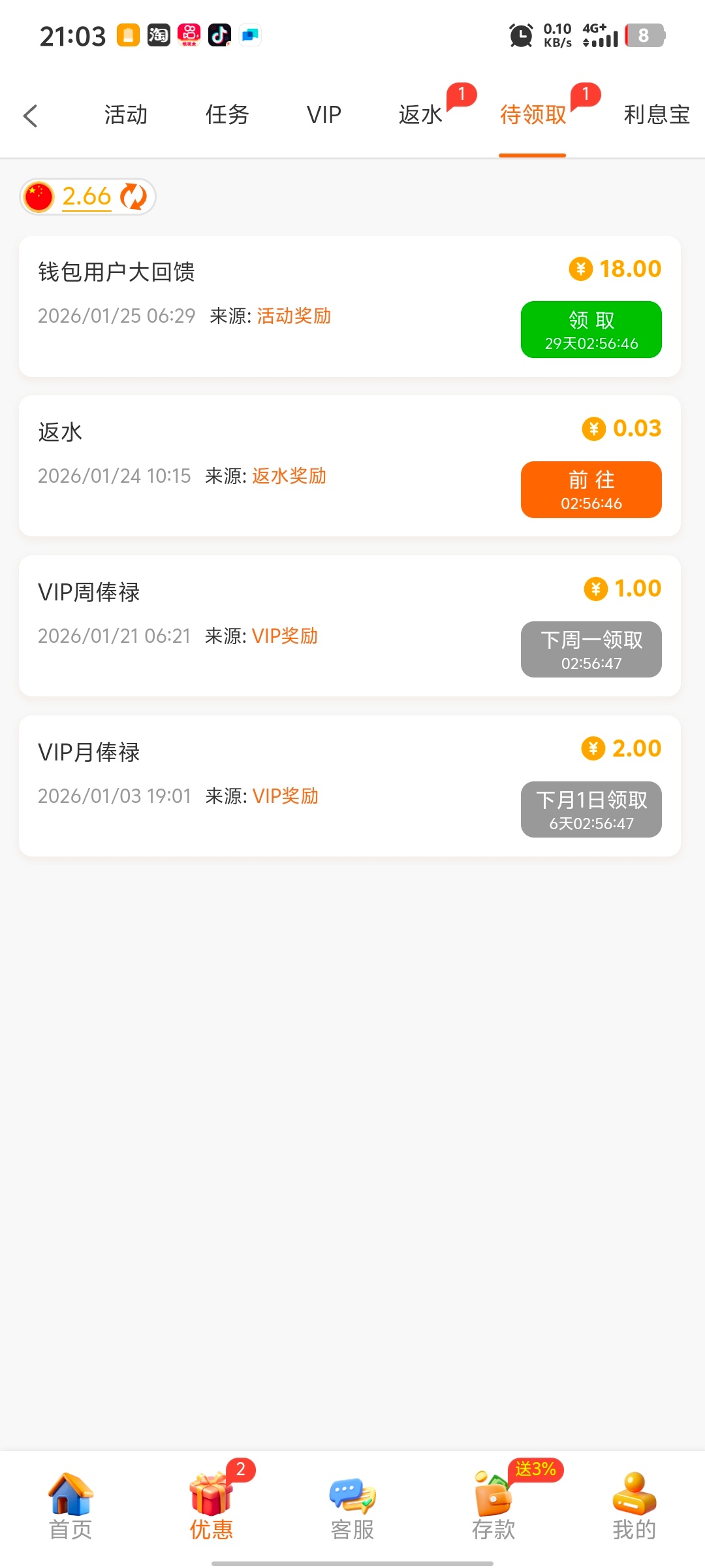 感谢了,有5块,要充10块才能领取,充了10块提了120