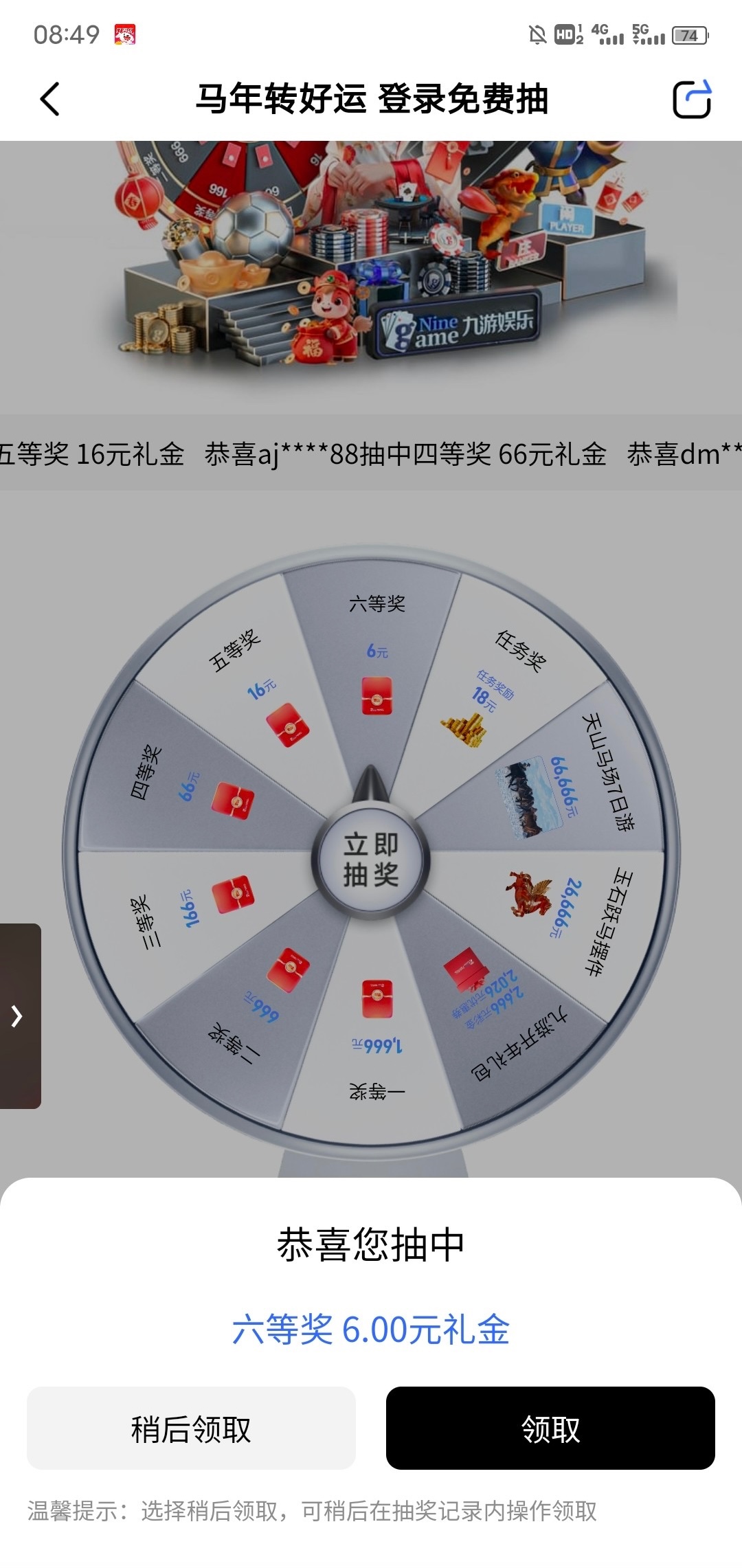 博系九游,看活动规则可以连续抽好几天,我等级掉完了只抽到6块地址:jiuyou.com