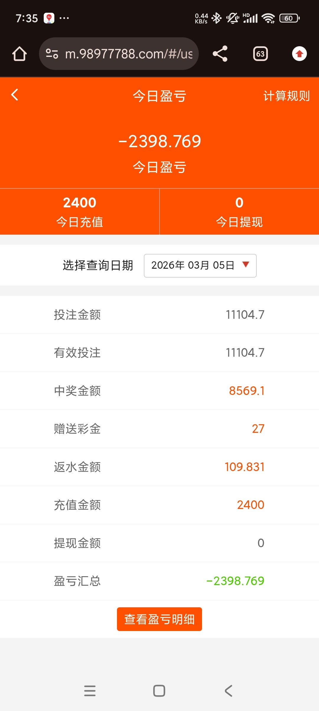 想着没事充着400玩玩,输了也没啥大碍。结果进去18,20来块的免费来了六七次,把把五六百块出来。输了400,又充1000,想把400赚回来就跑,结果1000又输,又充2000想把前面的赚回来。就是连锁反应懂吧,没了又充,几次下来最后一次充进去2000。就6400本金了。免费几次16,18,20来的也是那种吊样起起落落。输钱就是这么输的。最后无奈第一次梭哈加拿大,小单1000。刮出8吓一跳,感觉要凉,第二个刮1有戏,9点,最后一个刮出2。11小单。中6000好了长舒一口气。提现!最后也就亏了400块钱。命里有时终须有,万事皆天命。不然这把没输我还准备再充三四千进去。估计也是挂逼的命。差点整进去1w。祝大家好运吧。