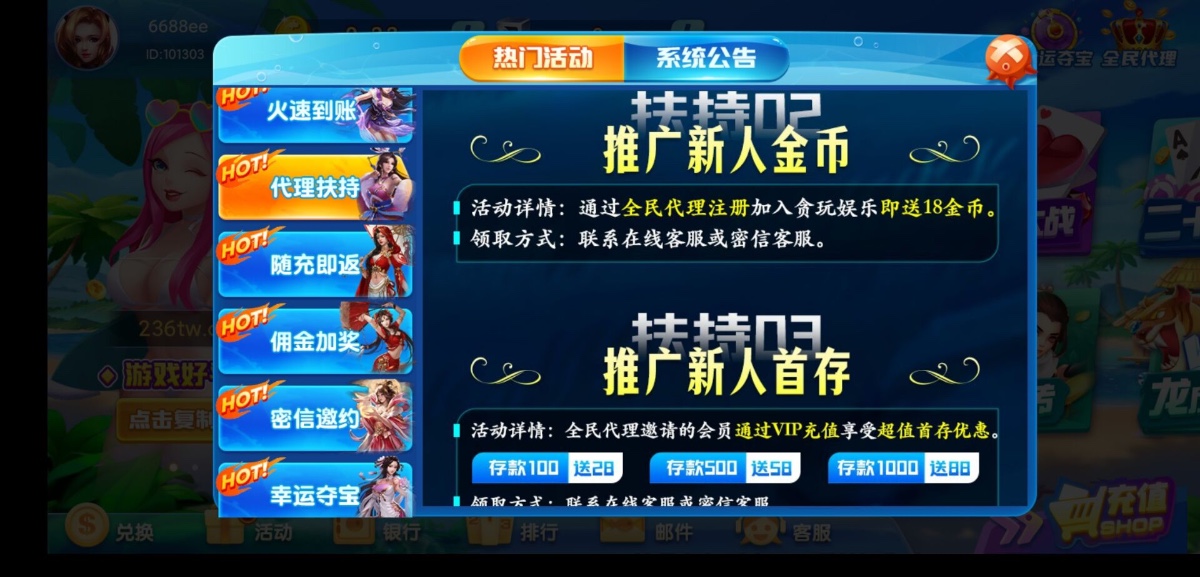 特邀用户下载完善资料找客服领36,基本每个人都送。如果不符合特邀也可以申请注册送18。申请过特邀彩金的,过一段时间去还可以申请,但是不要让客服发现要不然被封号。首存100送58推荐玩财神到2,手机号多的换IP无限撸,希望老哥们多多分享本站,叫上朋友一起撸,给狗庄上一课。这台子还是有格局的提款很稳。