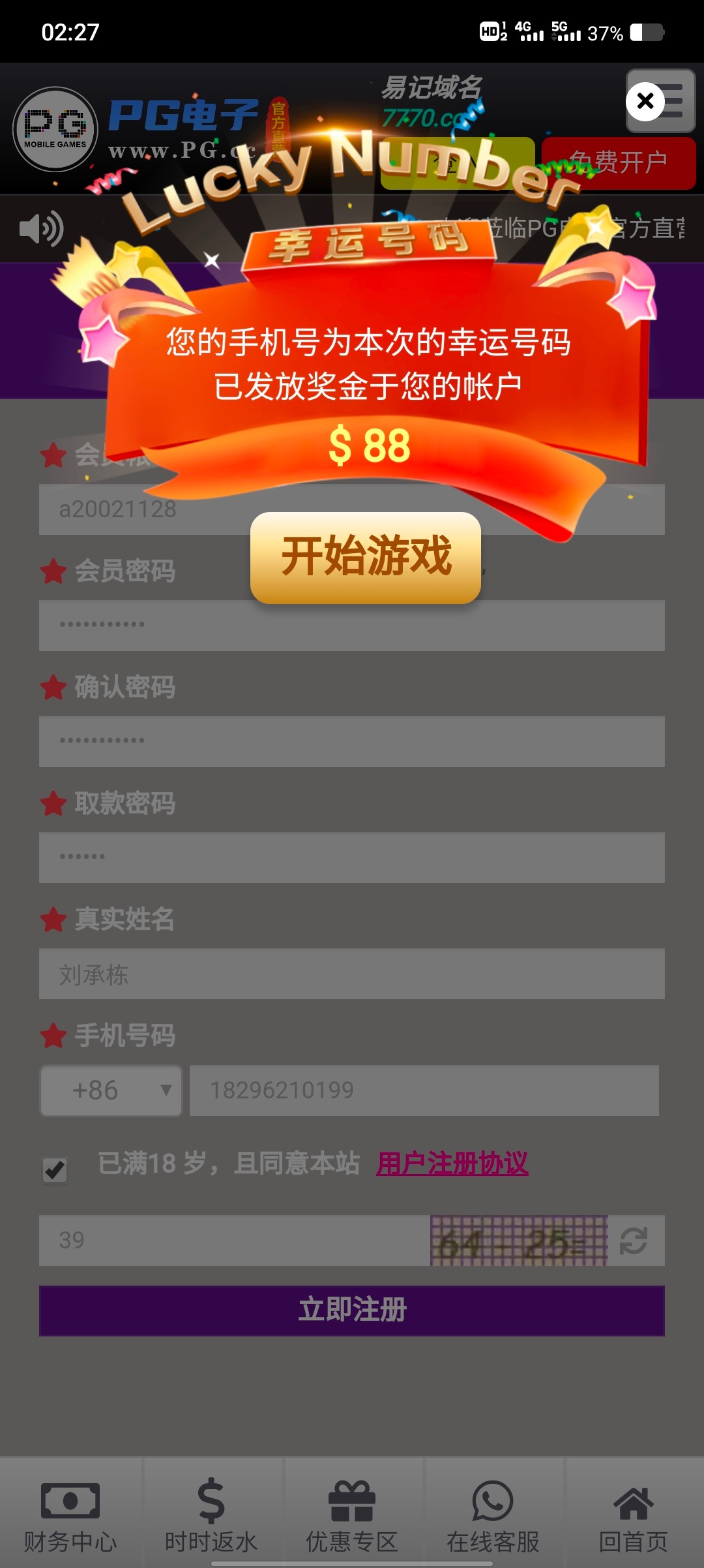 送的88 提款180 到账