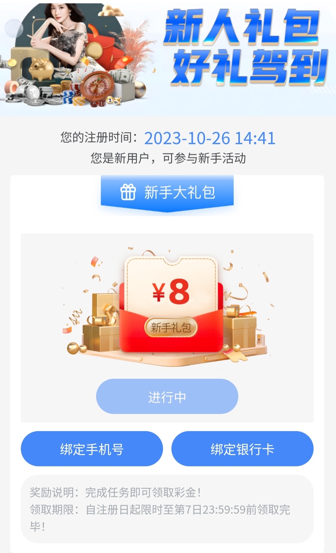新用户注册完善资料活动里自助申请秒送8