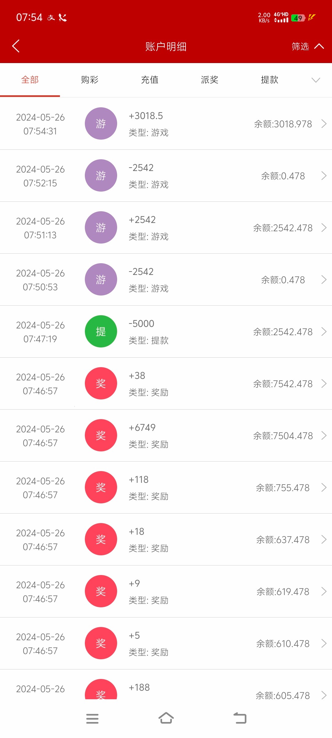 输1.2w 明天充值提现活动能领6k 玩了一个通宵到下午 反反复复充充提提 一个月不到打了136万流水 基本是AG 红了3个多 吐回去1.2个