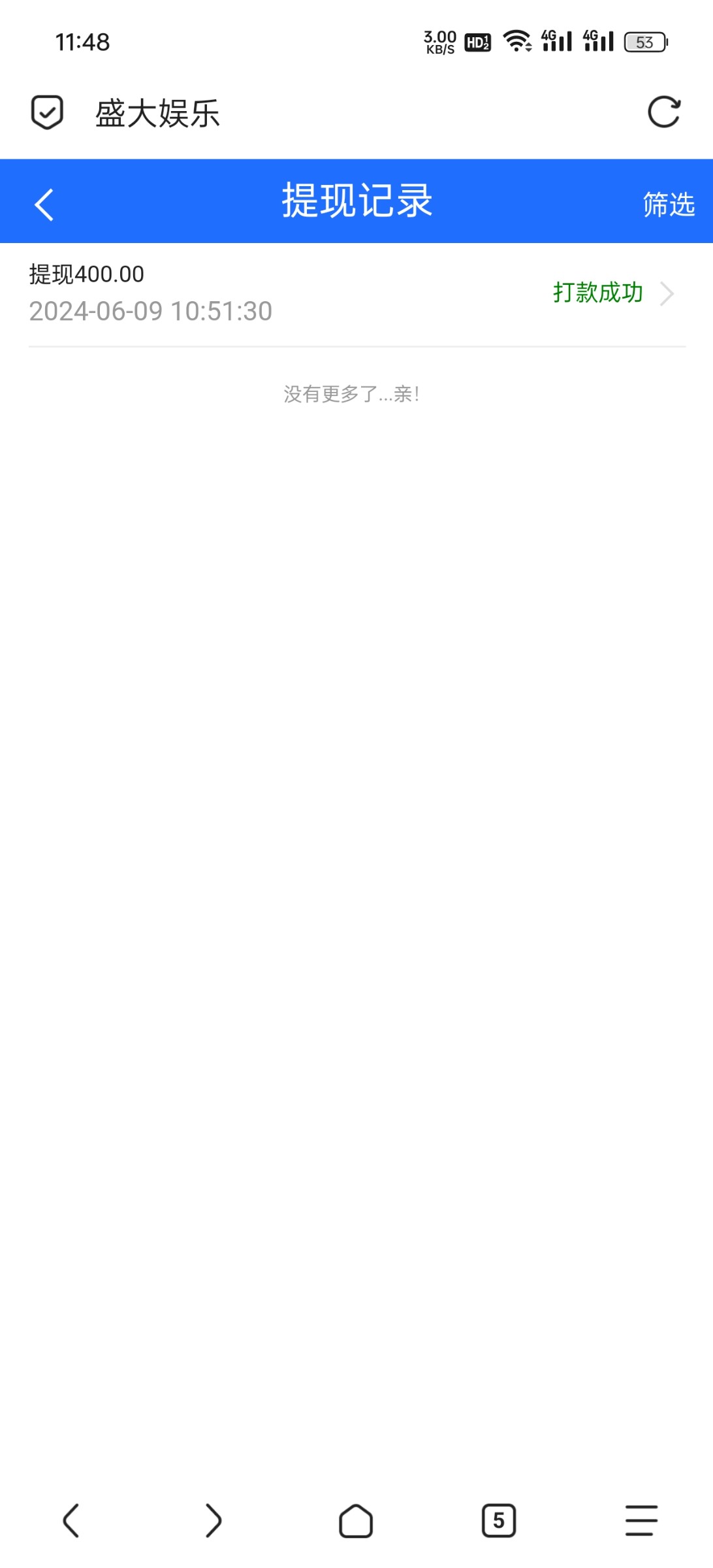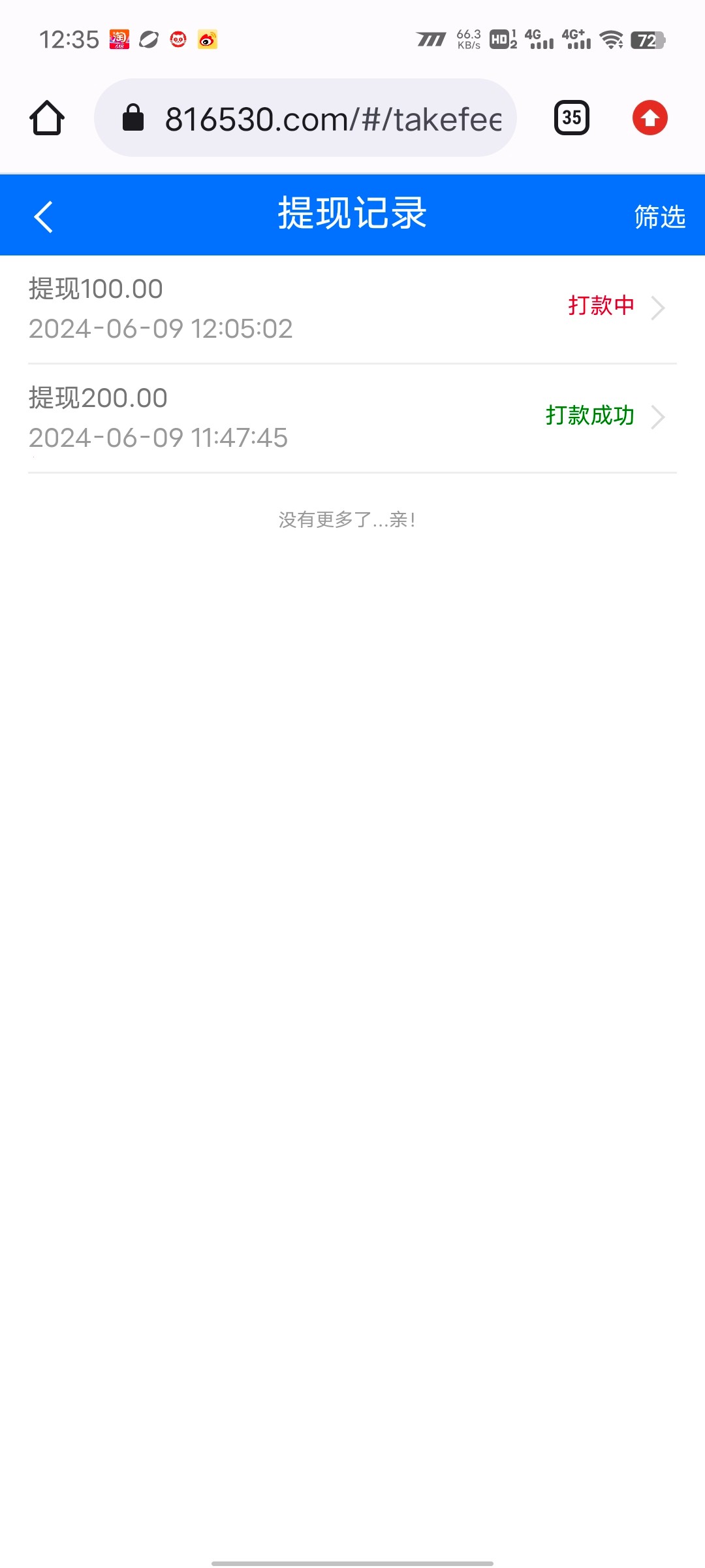 啊北 2个半小时到账