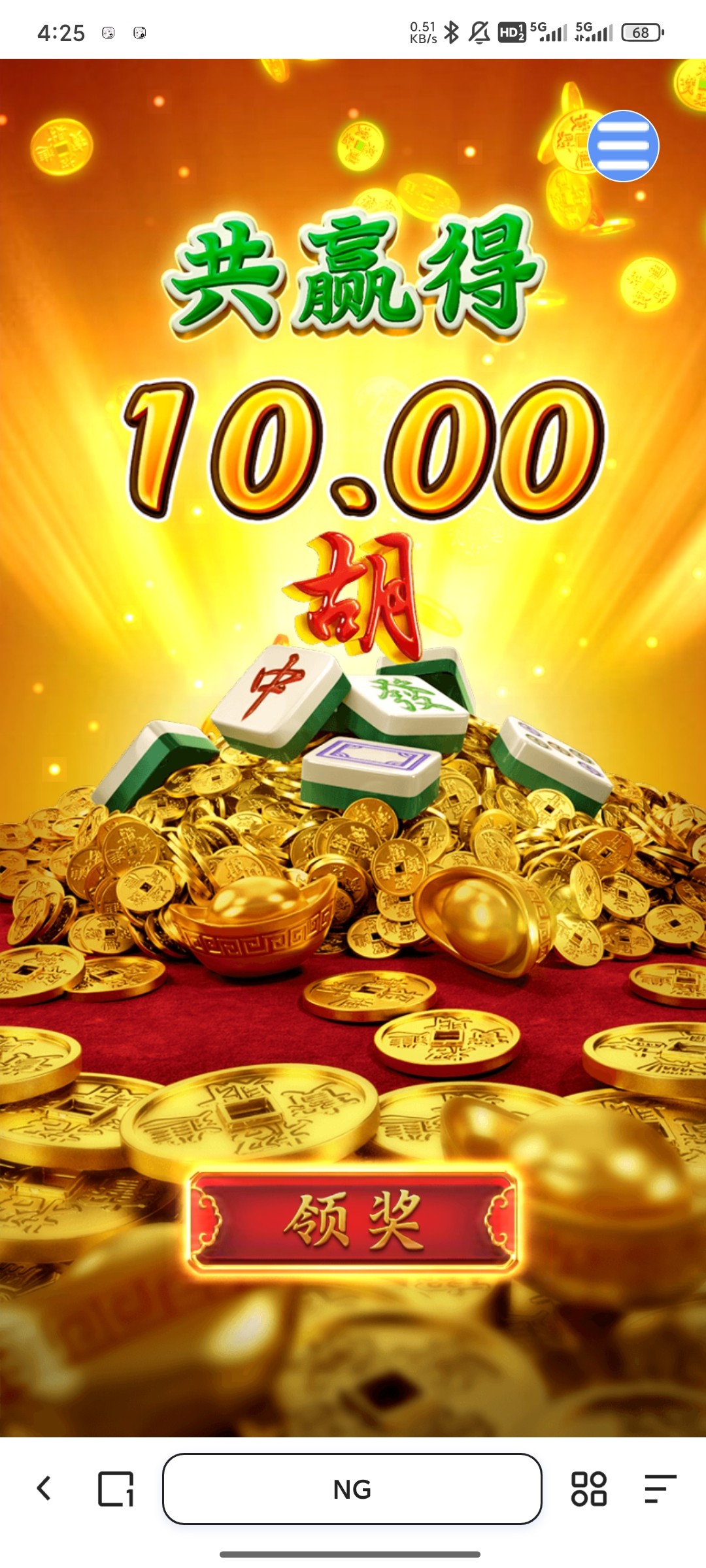 早知道就不去玩ng了,下午赢的2k,晚上就送给ng了,2000块钱,进了2次胡,一共炸70,乐死我了