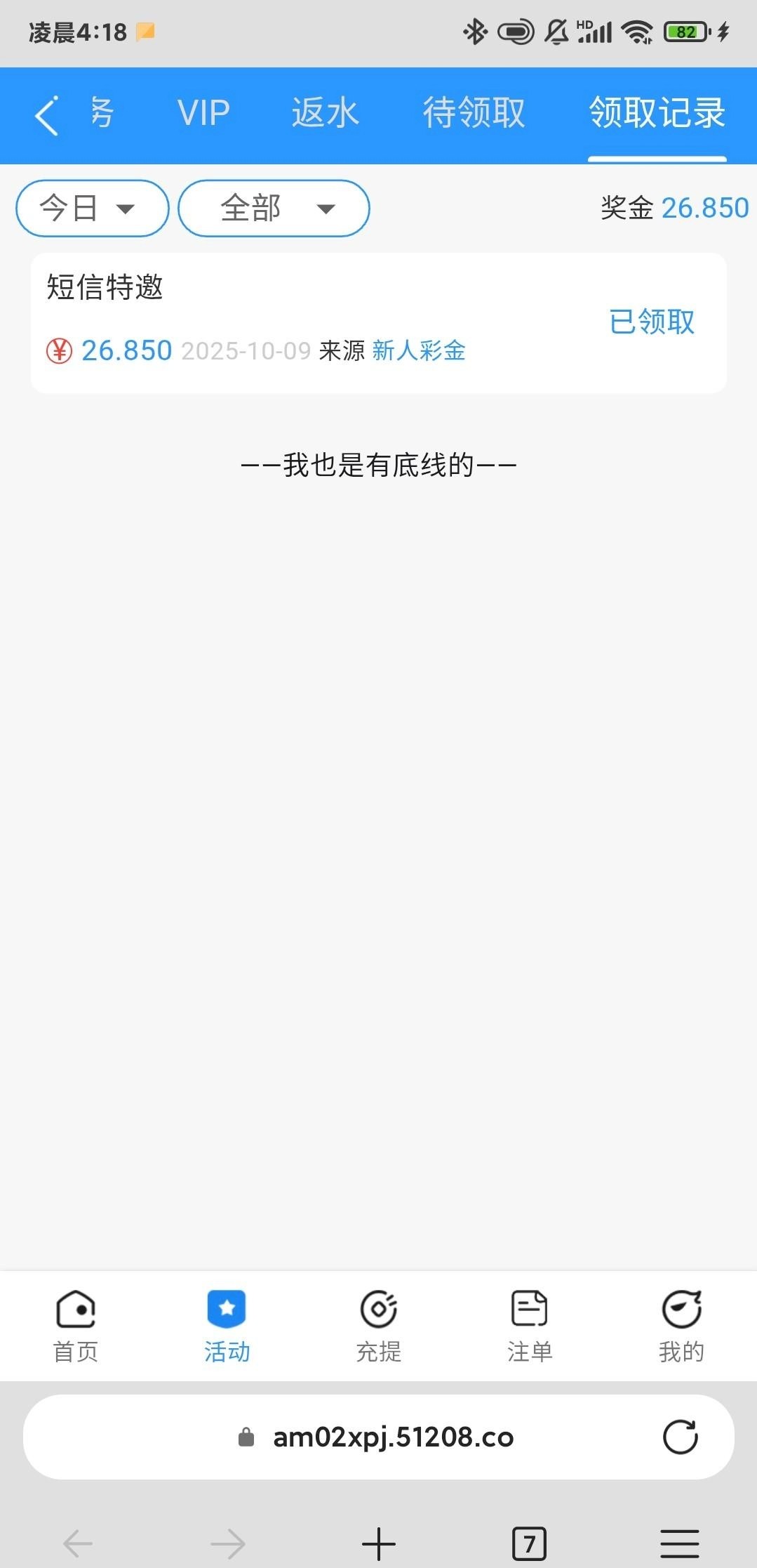 短信特邀彩金以前领过,提过,充值过!得吃的老板赏口饭吃。谢谢老板,祝各位老板一路长虹链接4627.com