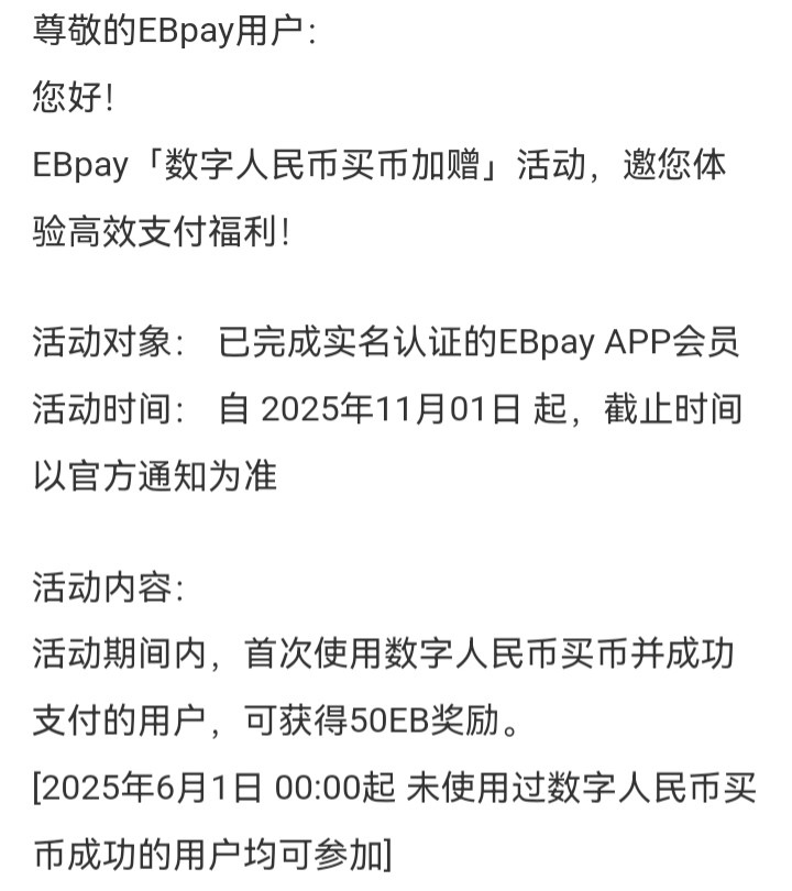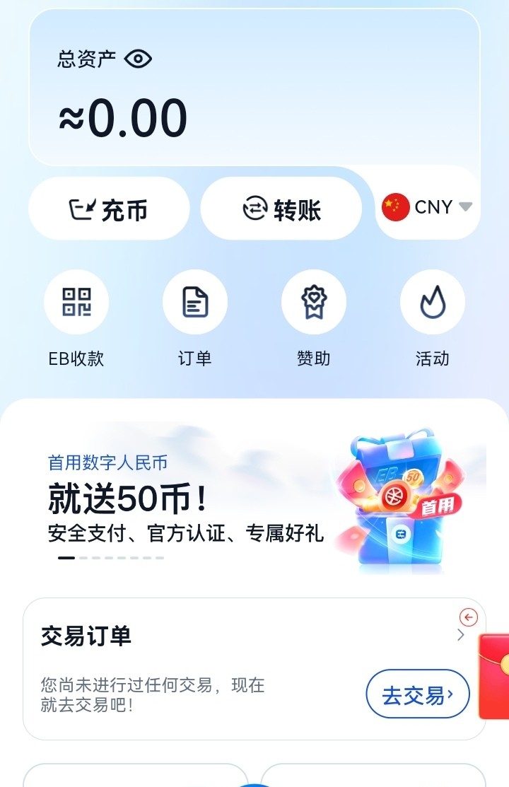 EBpay钱包首次用数字人民币买币送50