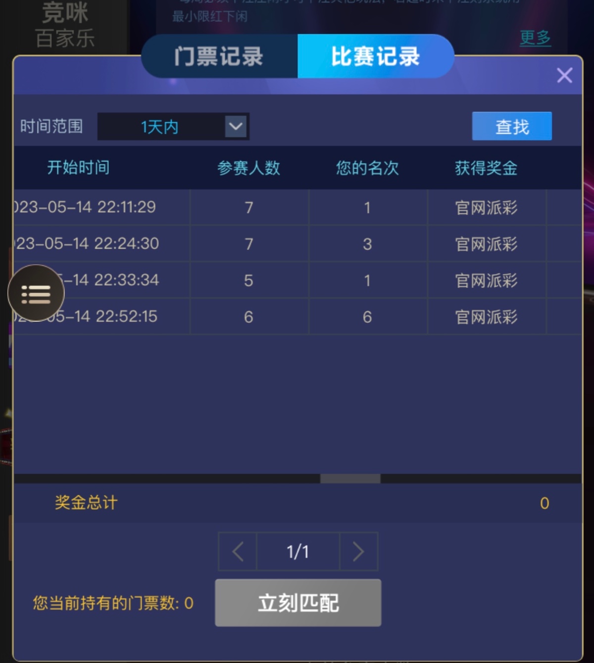 注册送4张门票,五人开赛,第一名88彩金