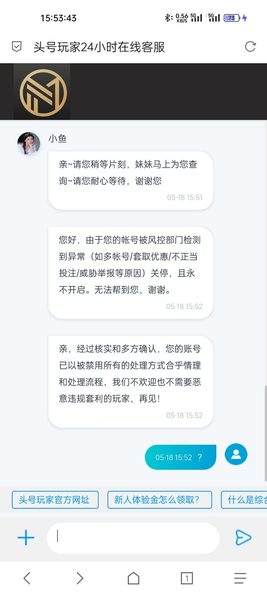 电话说充值198送200,送的需要打到1000才能转出来,正常打真人,打到650直接重注350,打够了1k,转出来提现让我打本金200流水(这个确实没打)打完这个流水提现1000,等了一个小时封号