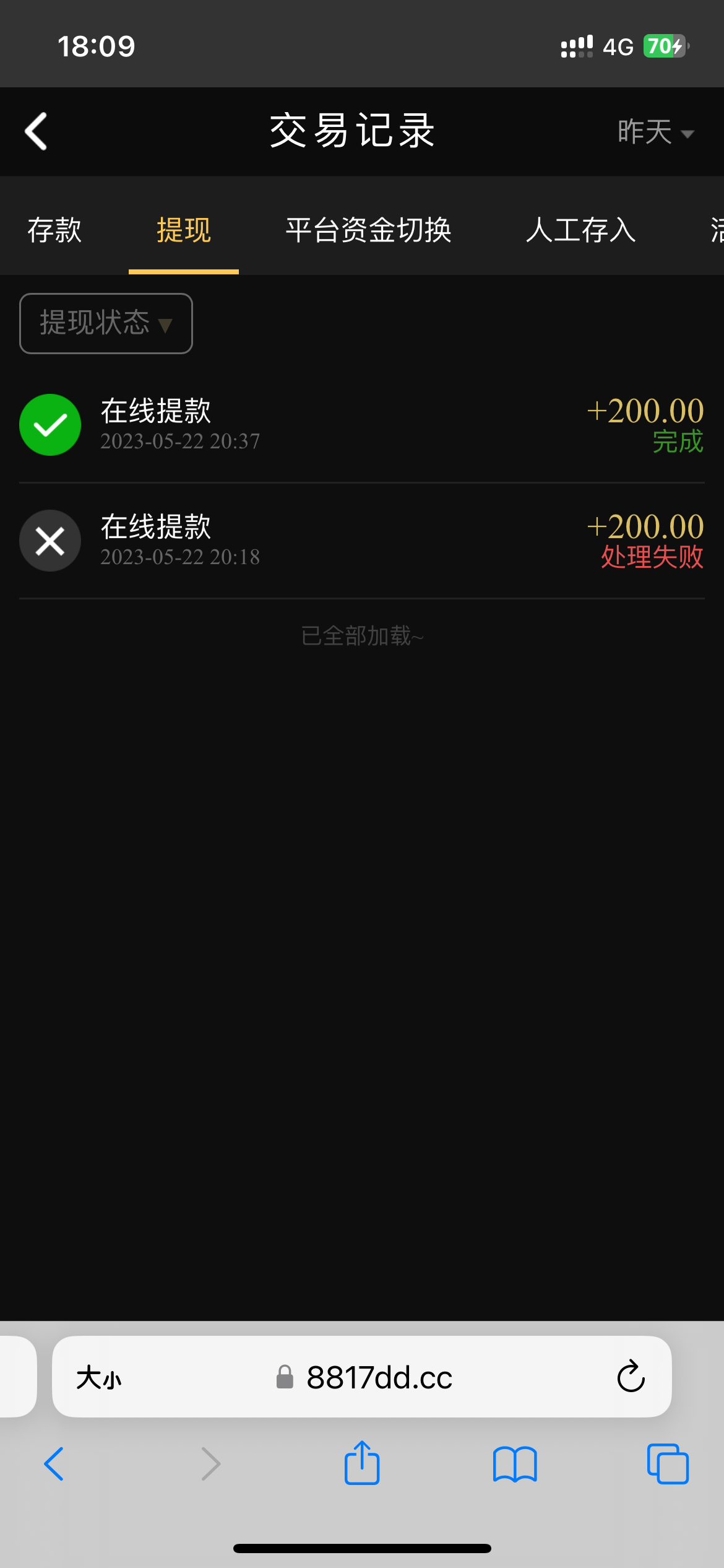 小赤佬 送了58打到200,显示出款成功,但是没到账