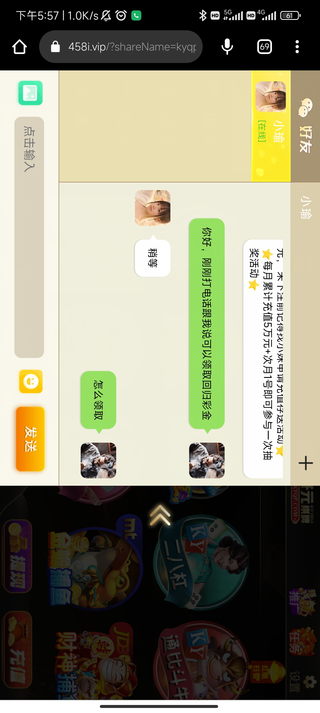 进入游戏,左下角找客服申请电话回归彩金,以前有充值的基本都有,碰瓷试试。