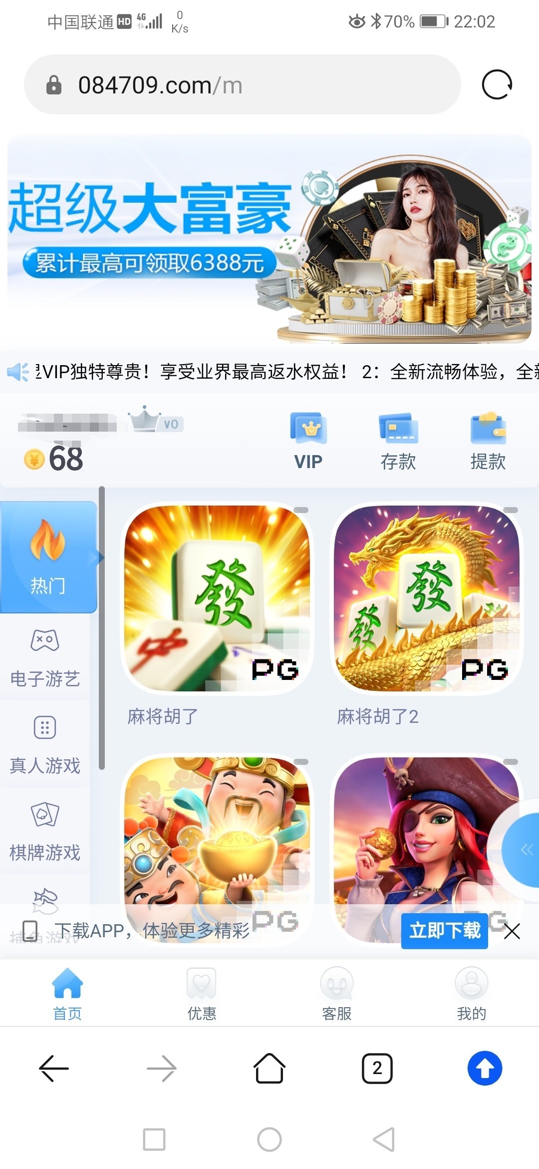 注册绑卡,等一两天会有特邀电话,送68,或者去找了客服,碰瓷申请没有的话等电话