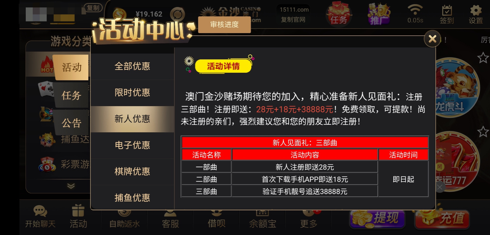 新用户注册下载APP绑定信息申请28注册彩金,还有转移彩金这两只能申请一个,出款要充值具体看下图规则自测吧。