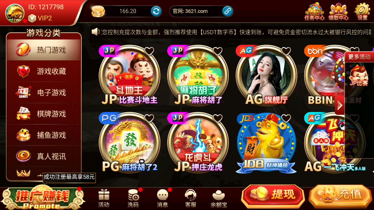 天庭娱乐里面有160块 要冲170才能打